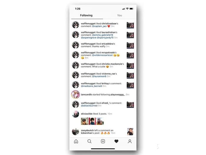 「Following Activity」這一功能在2019年前算得上是個關鍵功能,不過為了實現更簡化界面,現在已經被刪除掉。根據IG發言人表示,普通IG使用者幾乎不會去看Following Activity,認為他並不是特別有用的功能。