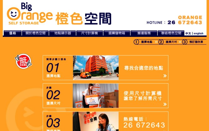 公司主要提供自助儲存庫服務,按不同需要提供多款尺寸儲物間。網站設有中英語言選擇,以精心設計的圖像及影片介紹迷你倉的服務,另備尺寸計算機供客戶參考。