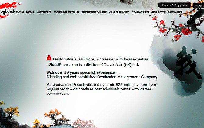 Eglobal-travelasia使企業之間透過電子商務的方式進行交易,促進公司間的溝通及交易。簡約及先進的網頁、商標及圖像設計為公司建立專業形象。專門的會員管理系統配合不同用家需要,使管理員更有效地處理資訊。