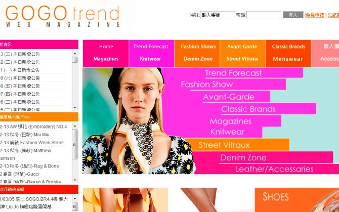 GoGo Trend主要提供高檔時尚的資訊及商品。網站設有後台管理讓管理員更新網站消息及圖片,同時設有會員系統讓會員購買商品。