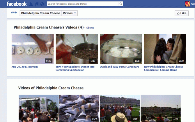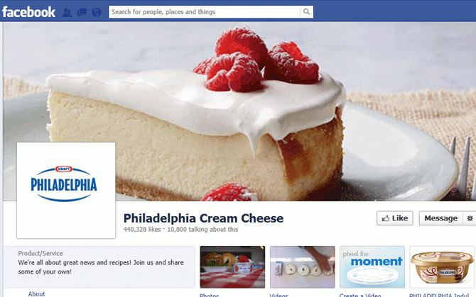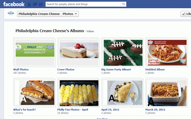 這是專門的Avid費城奶酪球迷的頁面。得到fans支持底下, 食物相冊佈滿食物的相,這不但令內容更豐富,更吸引不少瀏覽者觀看。